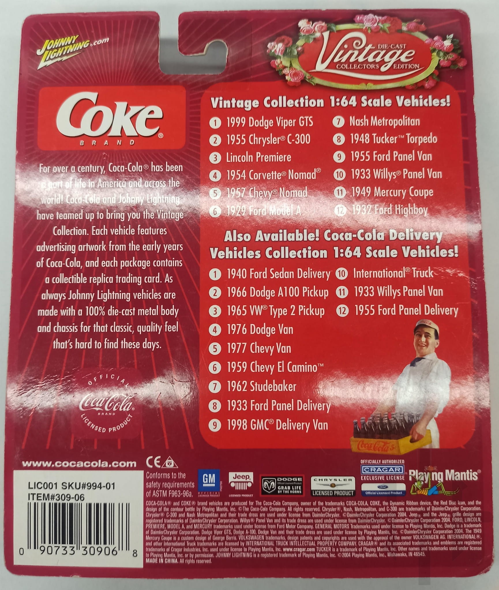 Ten model Johnny Lightning Coca-Cola 1948 Tucker Torpedo Gas Today z 2004 roku to obowiązkowy element dla kolekcjonerów pojazdów odlewanych i zabawek. Szczegółowość wykonania jest imponująca, od skali 1:64 po branding Coca-Cola na samochodzie. Ten współczesny model jest nadal w oryginalnym opakowaniu, co zapewnia jego nienaruszony stan. Model Tucker Torpedo Gas Today to doskonały dodatek dla fanów klasycznych samochodów i pamiątek związanych z Coca-Colą.