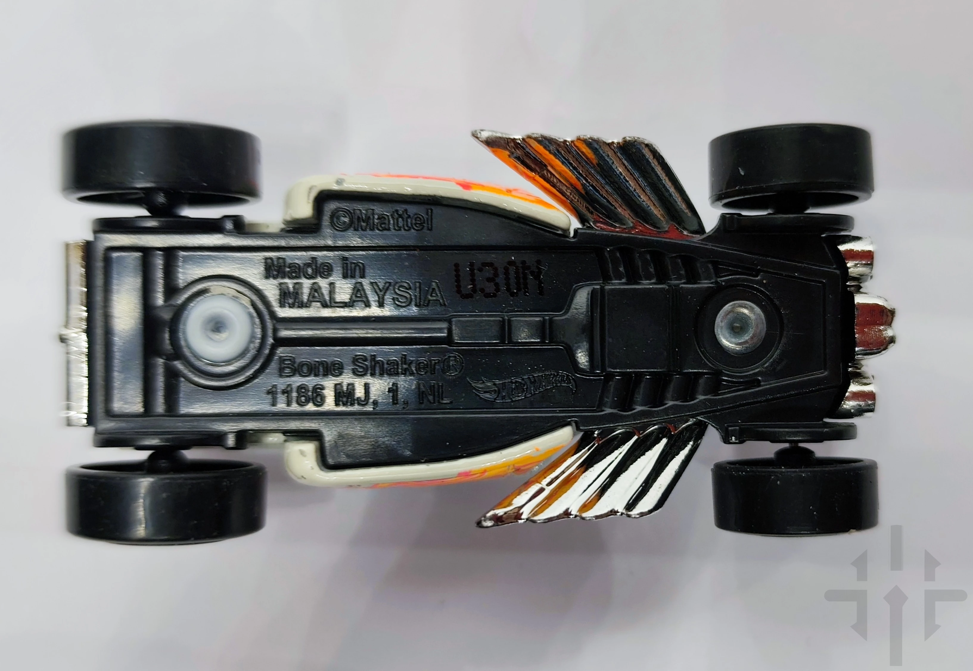 Bone Shaker (X6999) to jedna z najbardziej kultowych form Hot Wheels, zaprojektowana przez Larry’ego Wooda i uwielbiana przez kolekcjonerów na całym świecie. Wydanie 2025 Multipack Exclusive dostępne jest wyłącznie w zestawach wielopakowych (8‑Pack / 10‑Pack), co czyni je bardziej poszukiwanym wariantem.