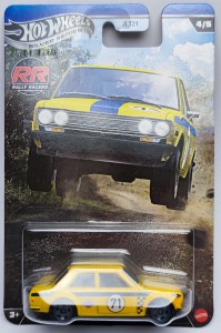 Datsun Bluebird 510 (JKX64) to kolekcjonerska miniatura z rocznika Hot Wheels 2026, należąca do serii Rally Racers (4/5). Kultowy japoński sedan z końca lat 60. powraca w dynamicznym, rajdowym wydaniu, które idealnie oddaje charakter tego legendarnego modelu.