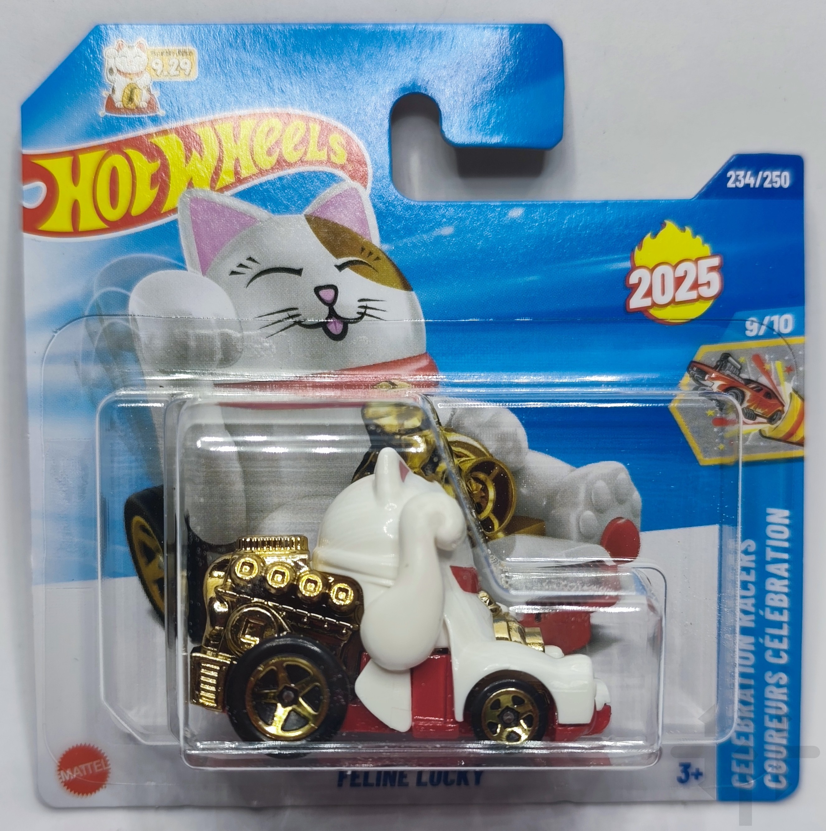 Feline Lucky to wyjątkowy model Hot Wheels inspirowany japońskim maneki‑neko, czyli „kotem szczęścia”. Samochód przedstawia figurkę kota na kołach, której prawa łapka unosi się i opada podczas jazdy, dokładnie jak w tradycyjnych talizmanach przynoszących pomyślność.