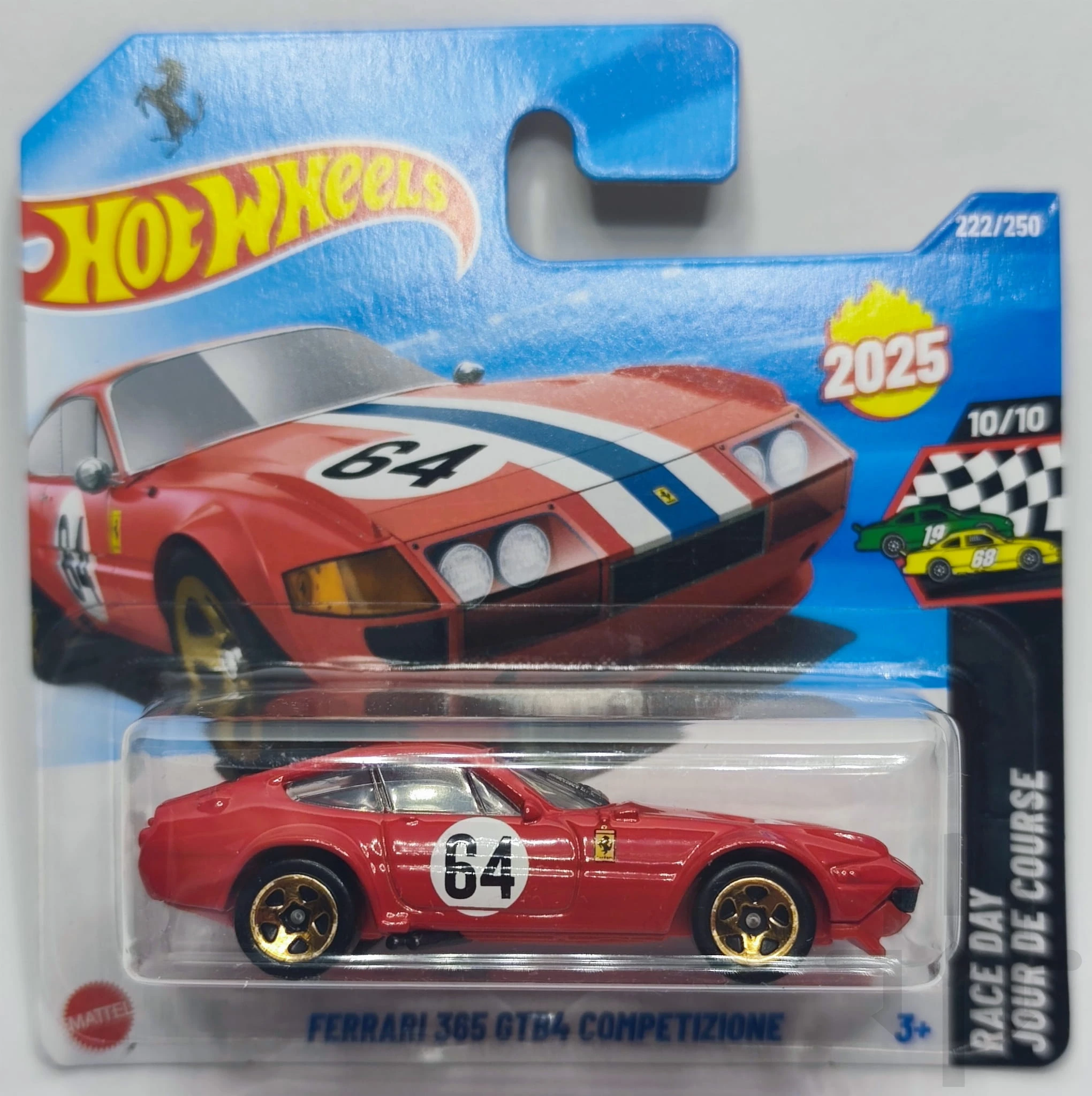 Ferrari 365 GTB4 Competizione (2025) – HYW48 to kolekcjonerski model inspirowany wyścigową wersją kultowego Ferrari Daytona. Samochód odwzorowuje agresywną linię nadwozia, długą maskę oraz charakterystyczne detale wersji Competizione, znanej z torów wyścigowych lat 70. Model wyróżnia się sportowym malowaniem, precyzyjnymi proporcjami i wysokiej jakości wykonaniem die‑cast. To doskonały wybór dla fanów Ferrari, klasycznej motoryzacji oraz kolekcjonerów Hot Wheels.