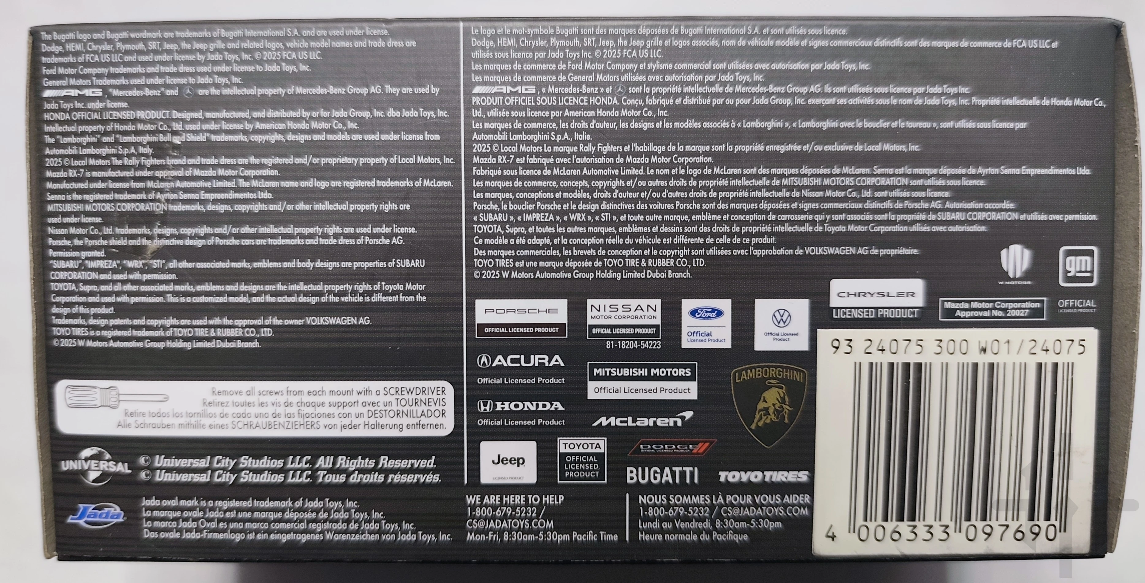 Model wykonany jest z metalu typu die‑cast z plastikowymi elementami, co zapewnia solidność i wysoką jakość detali. Charakterystyczne malowanie, sportowe linie i filmowy design sprawiają, że to obowiązkowa pozycja dla każdego fana serii oraz kolekcjonerów modeli samochodów.