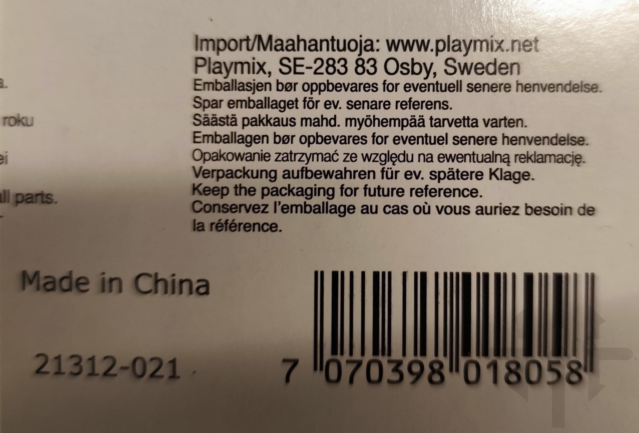 - Zawiera małe elementy, które mogą zostać połknięte.