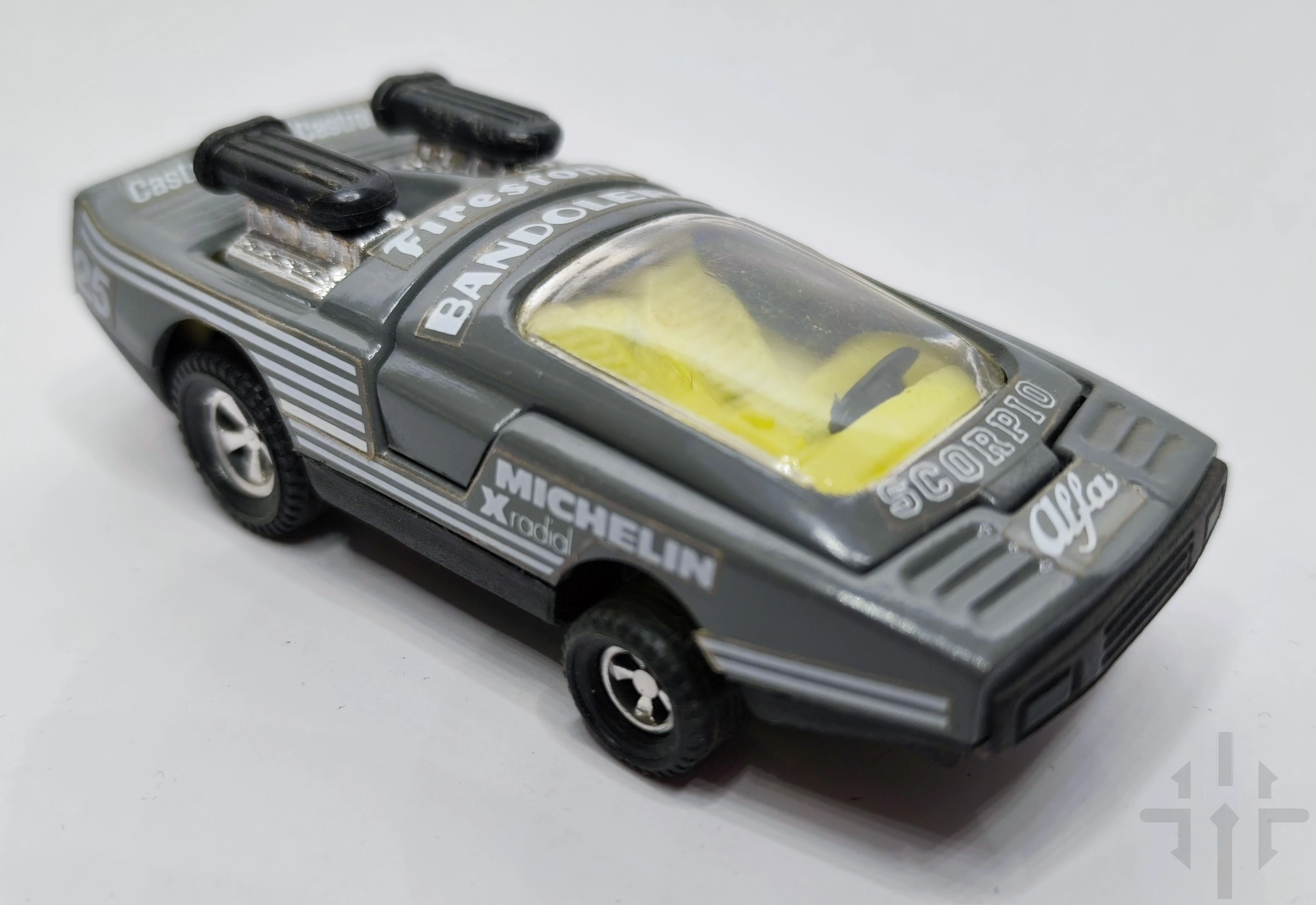 Kultowy model samochodu Bandolero produkowany w Polsce w okresie PRL przez firmę Lonza (znaną również jako Scorpio / Alfa). To klasyczna zabawka z lat 70–80, wykonana z metalu i plastiku, reprezentująca charakterystyczny styl polskich modeli die‑cast z tamtych czasów.