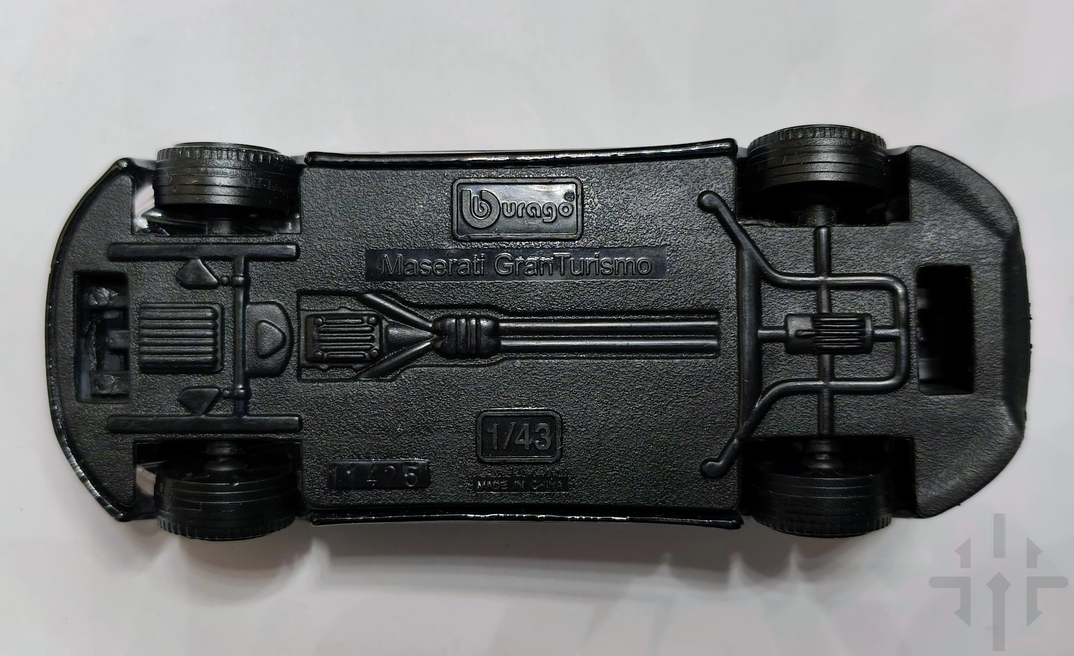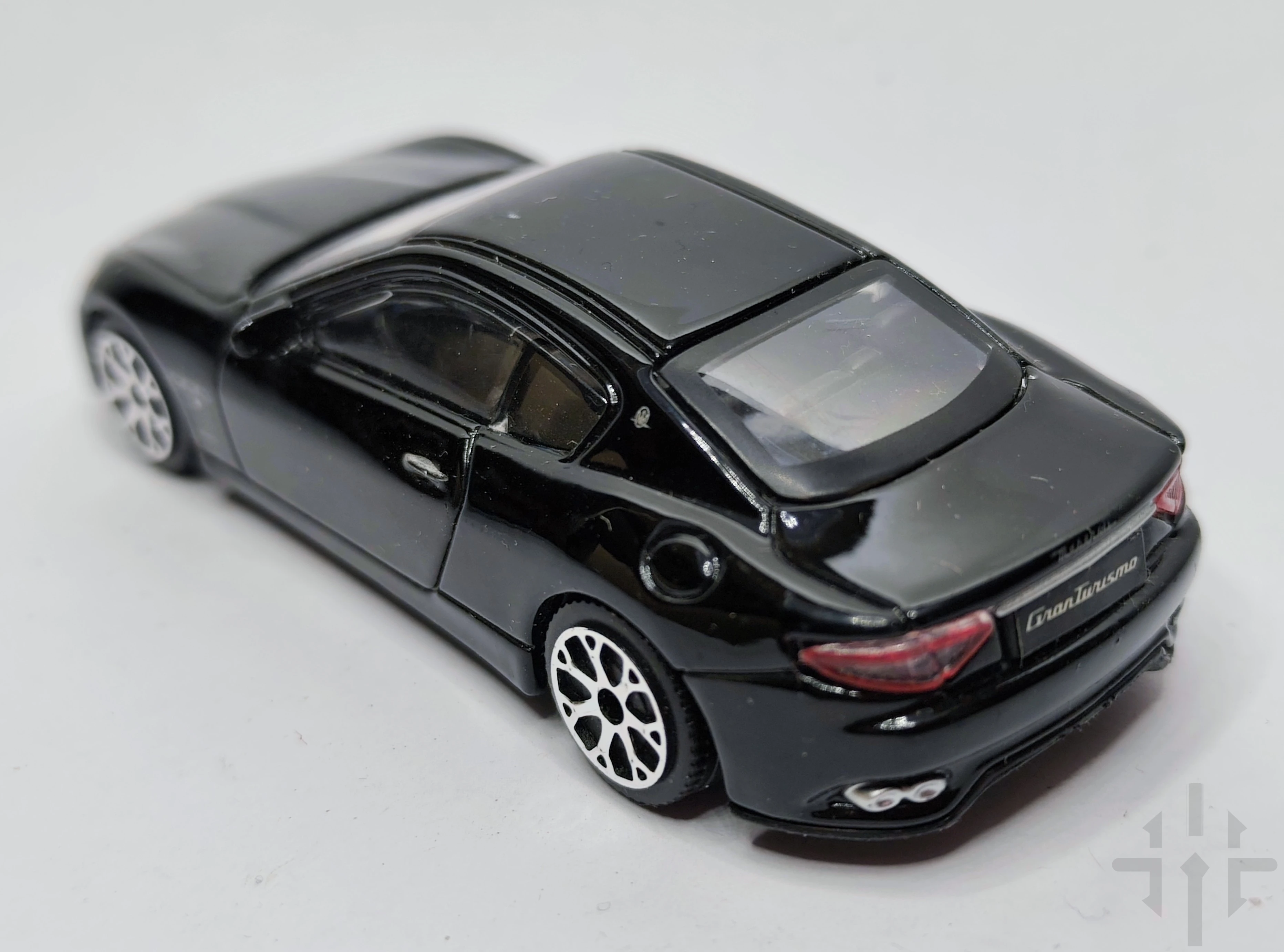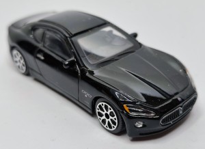 Miniatura wykonana jest z metalu typu die‑cast z plastikowymi elementami, co zapewnia trwałość oraz estetyczne wykończenie. Czarny lakier podkreśla luksusowy charakter Maserati, a realistyczne proporcje sprawiają, że model świetnie prezentuje się w kolekcji.