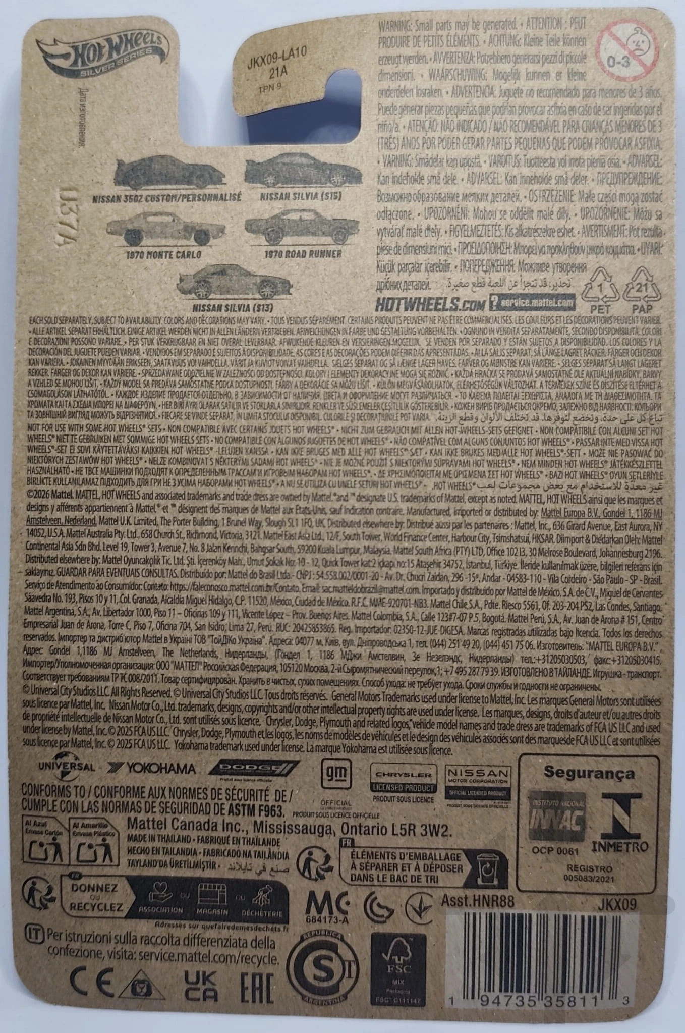 Hot Wheels Nissan Silvia (S13) – 2026 – JKX09 to model z prestiżowej linii Silver Series, inspirowany kultową japońską ikoną motoryzacji. Wersja ta odwzorowuje klasyczne linie nadwozia S13, charakterystyczny sportowy profil oraz detale znane z prawdziwego samochodu. Edycja JKX09 wyróżnia się metalicznym wykończeniem, precyzyjnym tampodrukiem oraz kolekcjonerskim charakterem, dzięki czemu stanowi atrakcyjny element każdej kolekcji JDM i Hot Wheels. Model wykonany jest w skali 1:64 z metalu i plastiku, co zapewnia trwałość i wysoką jakość prezentacji.