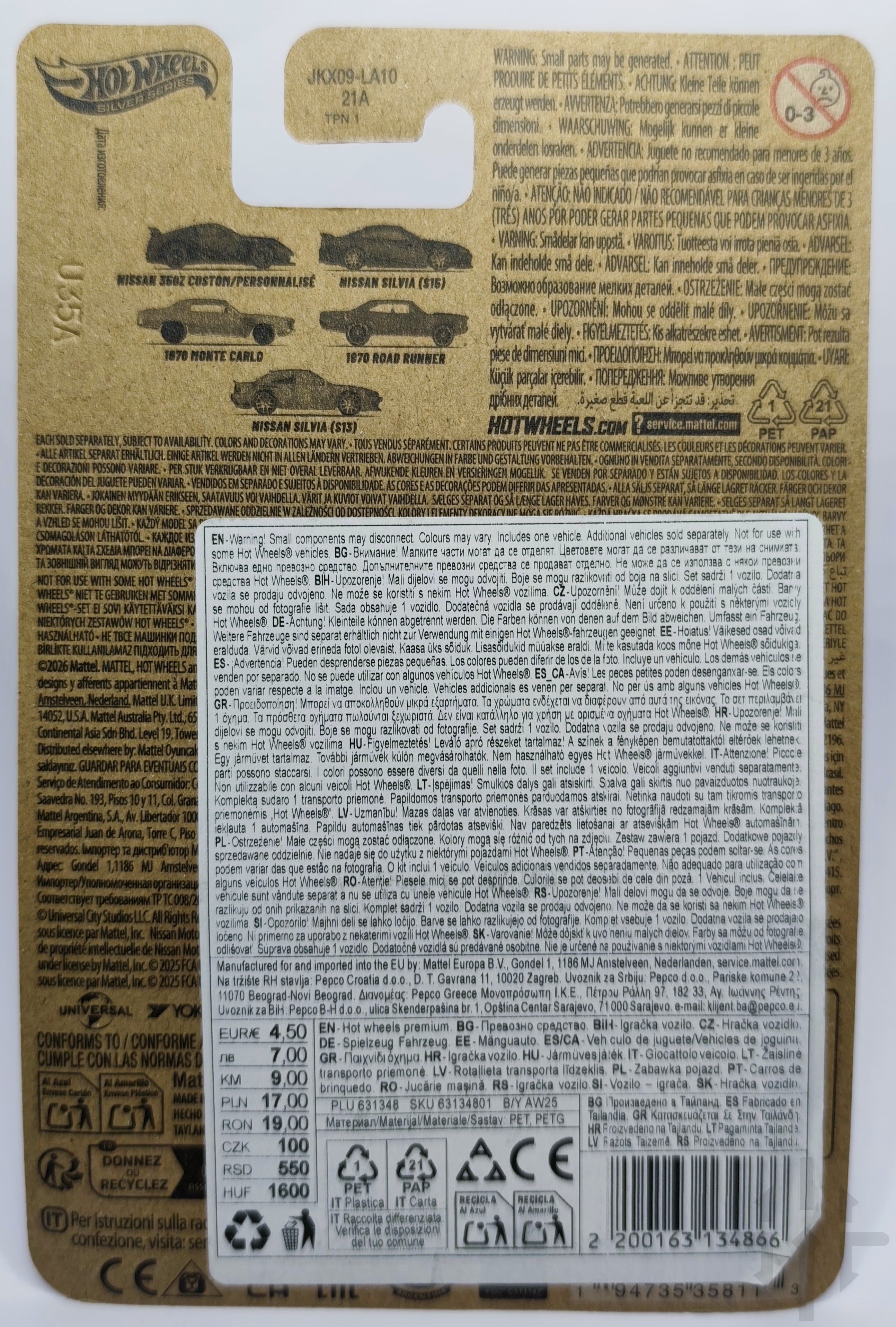 Hot Wheels Nissan Silvia (S13) – 2026 – JKX09 to model z prestiżowej linii Silver Series, inspirowany kultową japońską ikoną motoryzacji. Wersja ta odwzorowuje klasyczne linie nadwozia S13, charakterystyczny sportowy profil oraz detale znane z prawdziwego samochodu. Edycja JKX09 wyróżnia się metalicznym wykończeniem, precyzyjnym tampodrukiem oraz kolekcjonerskim charakterem, dzięki czemu stanowi atrakcyjny element każdej kolekcji JDM i Hot Wheels. Model wykonany jest w skali 1:64 z metalu i plastiku, co zapewnia trwałość i wysoką jakość prezentacji.
